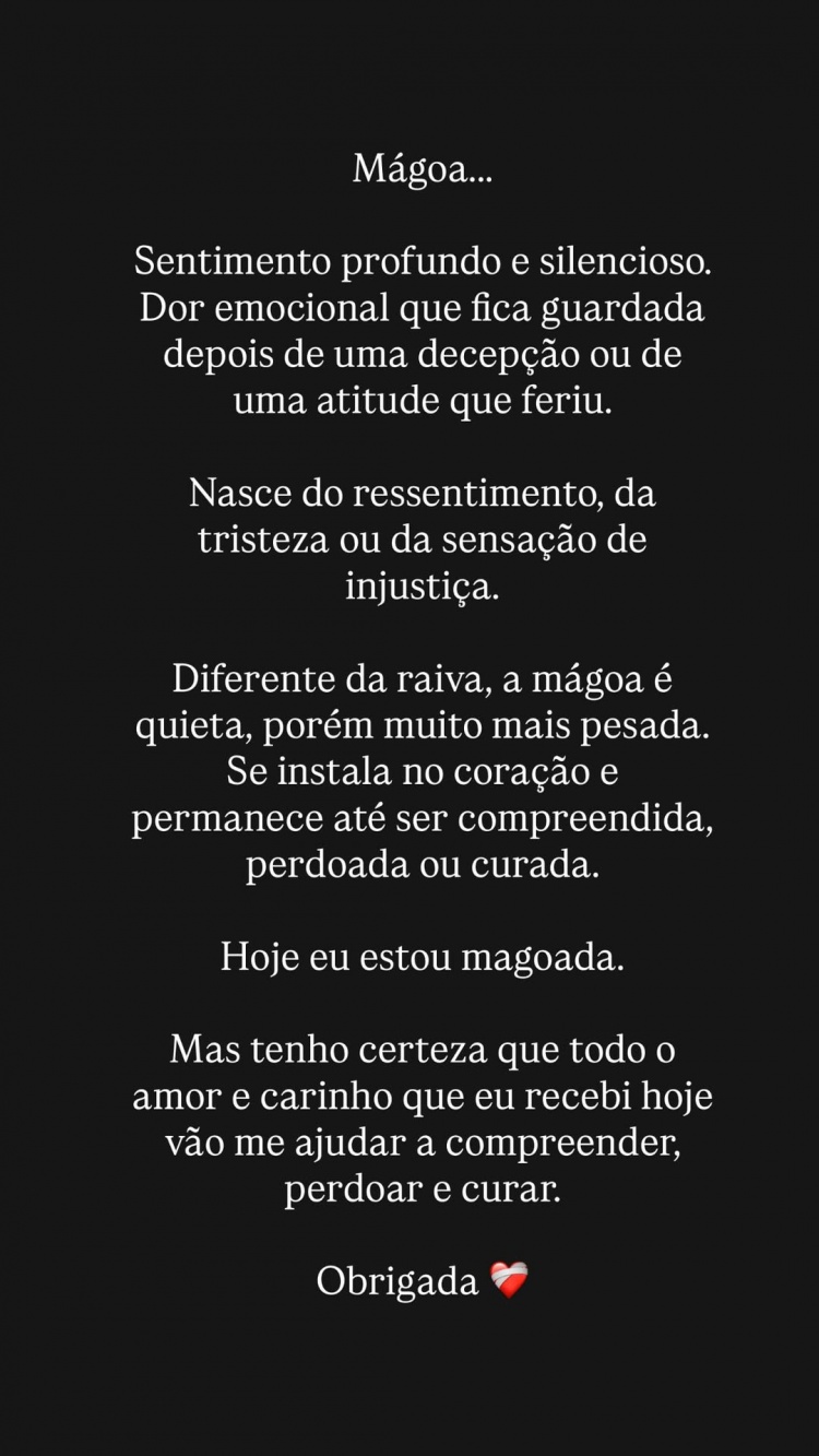 今天,我感到伤心。但我坚信,今天我所收获的所有爱与关怀,都将帮助我去理解、去原谅、去治愈。谢谢。”